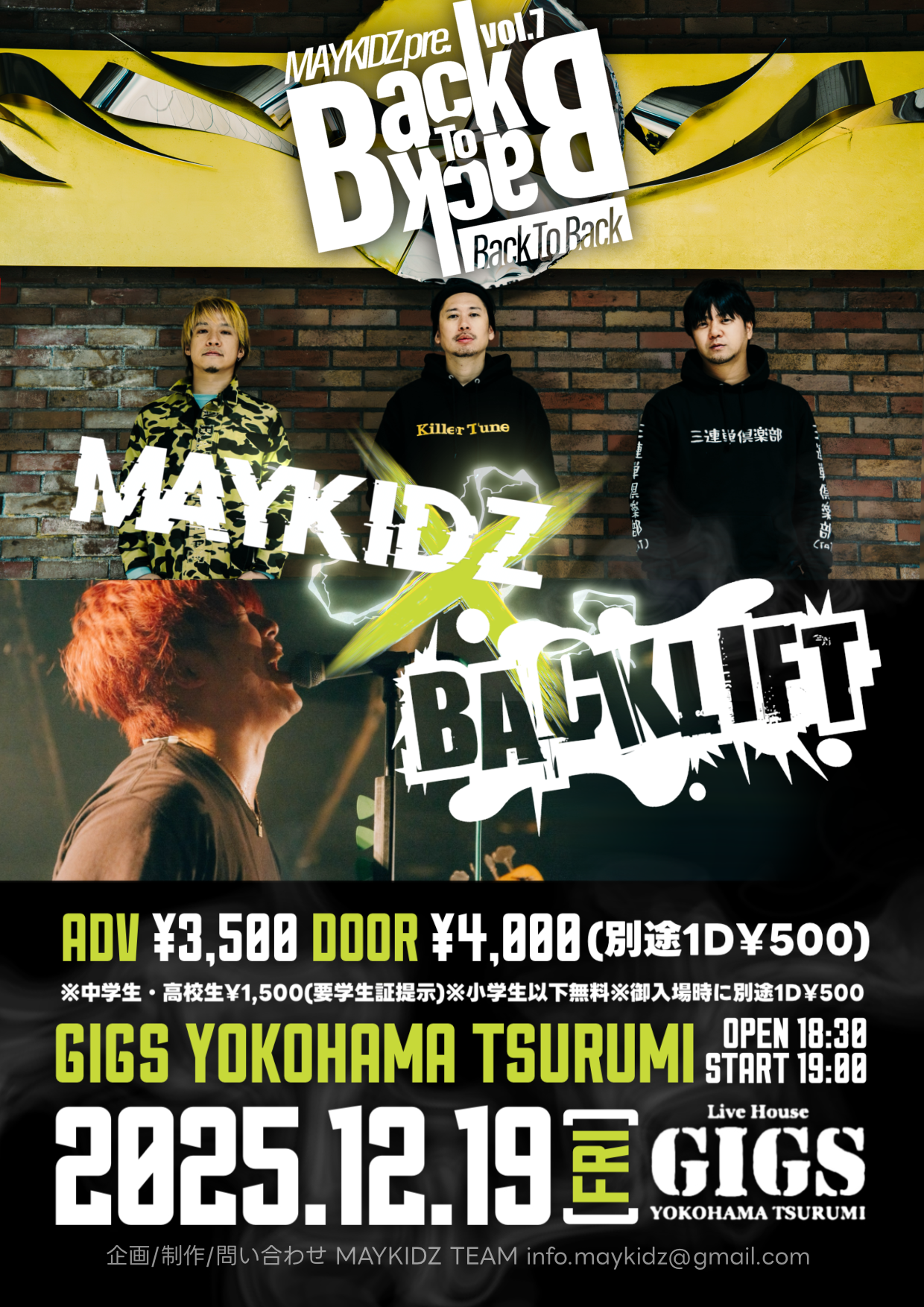 【MAYKIDZ “Back To Back” vol.7 】MAYKIDZ × BACK LIFT ※2MAN LIVE!!